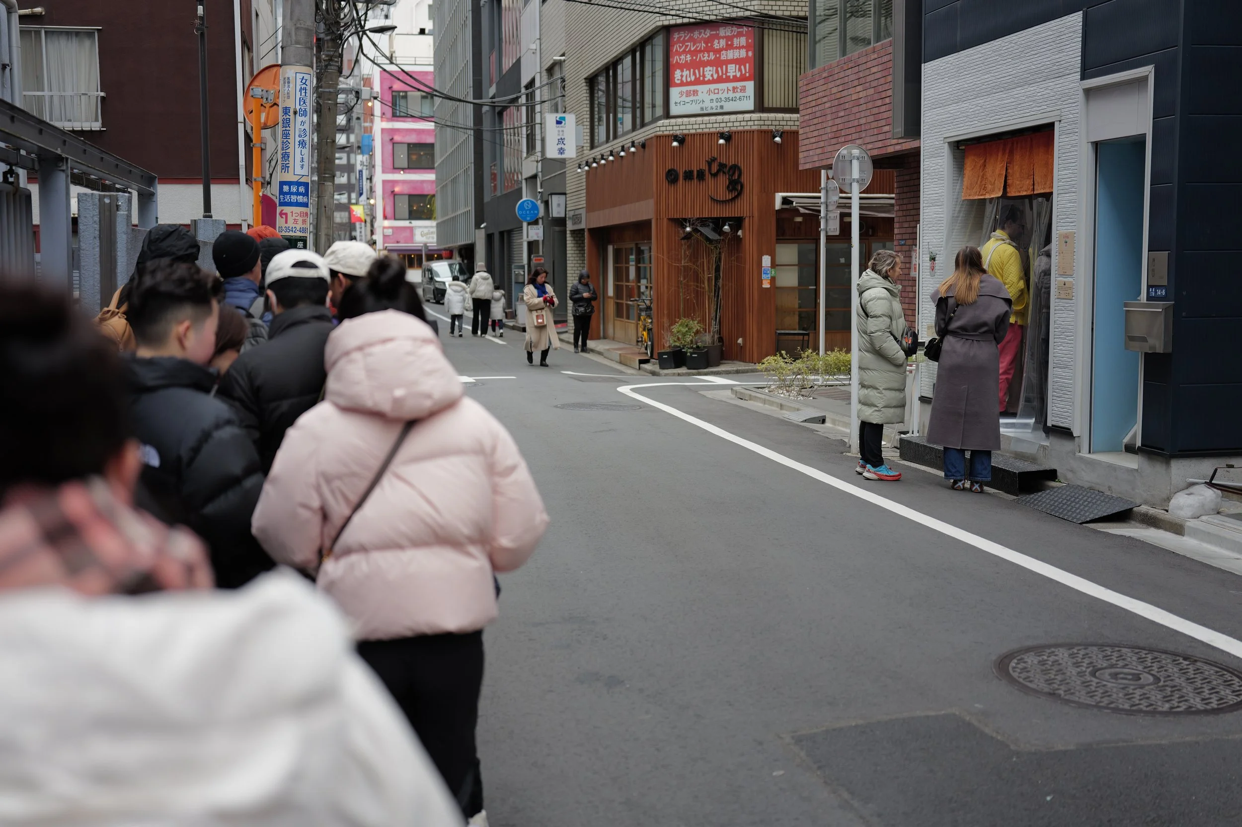 My education on lines for restaurants and coffee shops in Tokyo continued this week. I learned the Japanese word for long lines of people waiting for something: gyoretsu (行列), that learning about queuing etiquette starts for most Japanese when they are a toddler, and that long lines often signify that the item or service is of exceptional quality and worth waiting for. Patience is important because many establishments have seating for or the ability to serve only a handful of guests at one time.