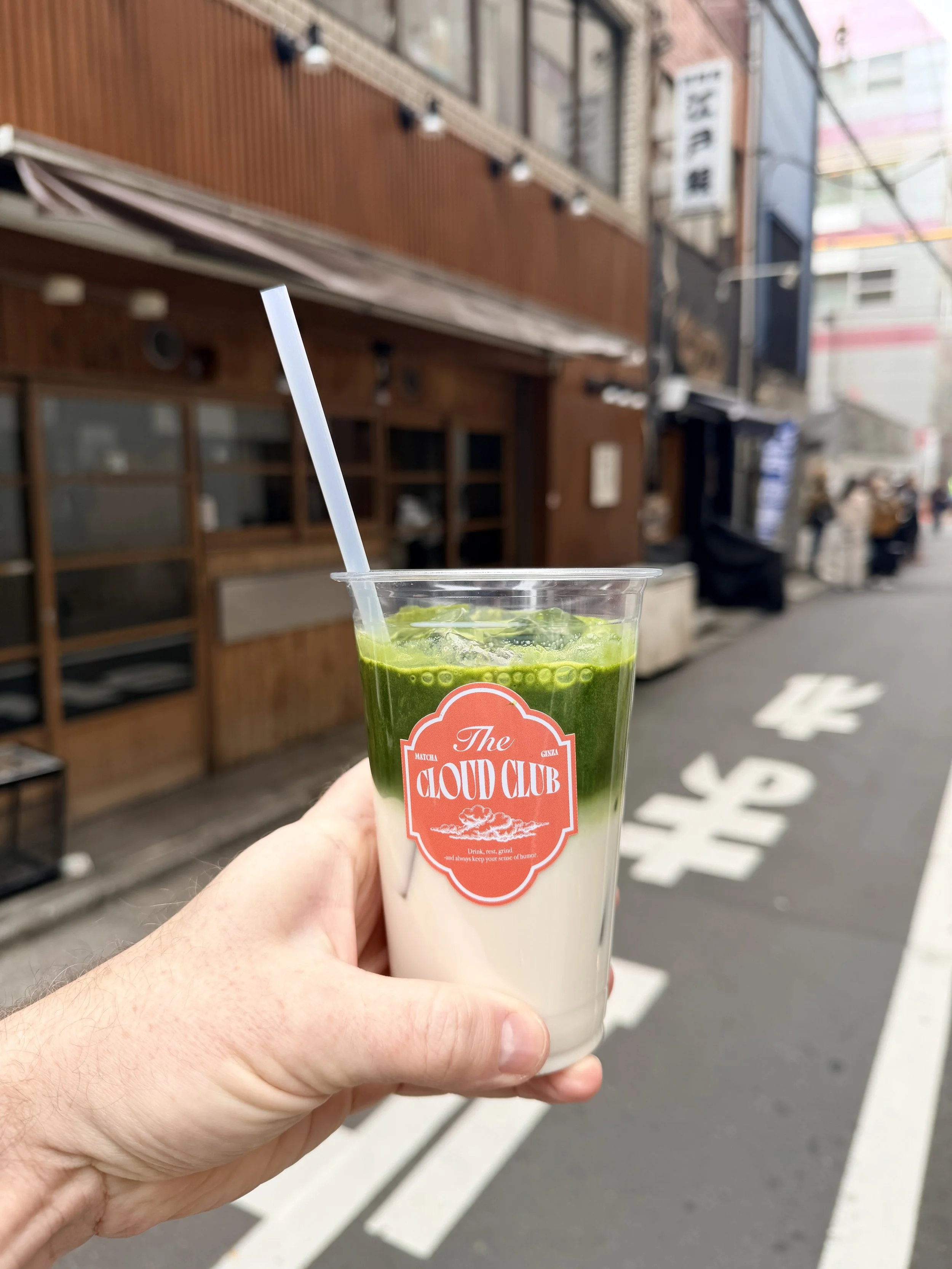 I first queued up at Cloud Club Matcha to wait for what a colleague described as among the best matcha lattes in Tokyo. When I arrived at 10:45a, there were 17 people ahead of me in line. I was directed inside by a staff member to place my order about 30 minutes later. Inside, the staff carefully measured a few grams of first-harvest matcha, poured water heated to 78ºC over the vibrant green powder, and methodically whisked away until it was a thick consistency and ready to be poured over chilled milk for me to then stir it in and enjoy.