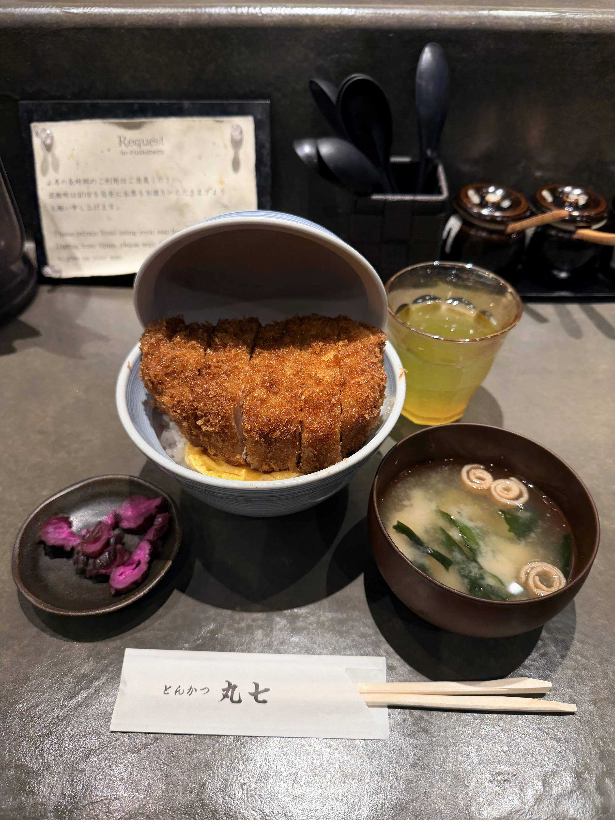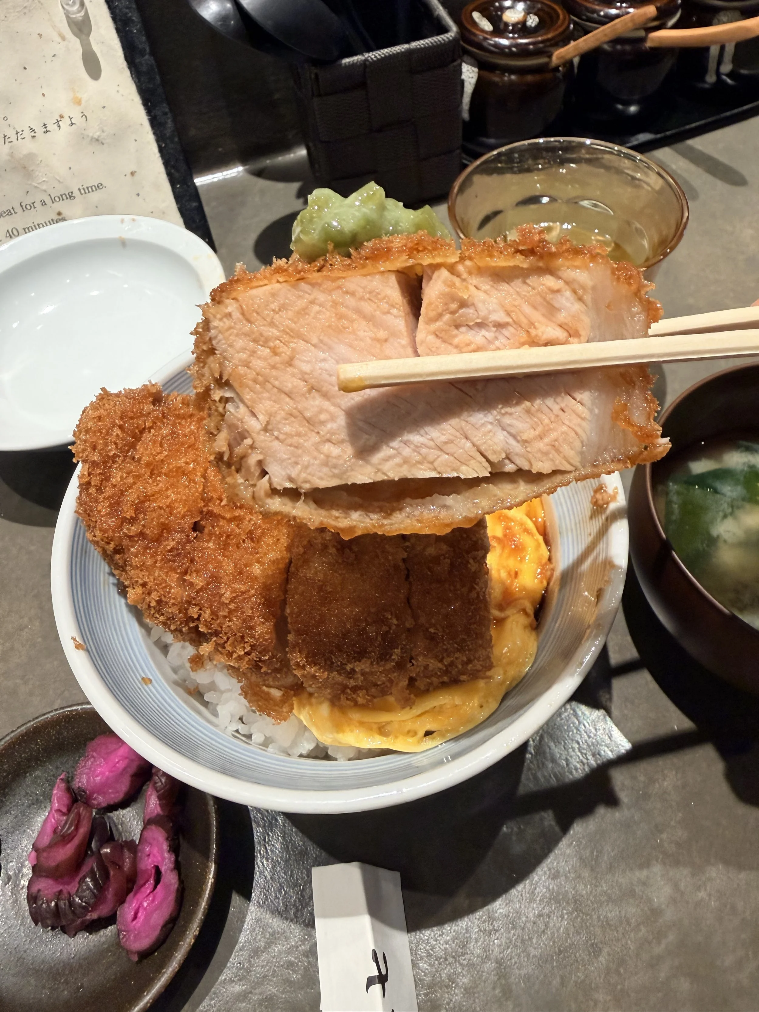 Finally, I decided I would queue for tonkatsu served over lightly scrambled eggs at Marushichi. A colleague recommended this as incredible tonkatsu, and when I tried to eat here last weekend, I was turned away because the restaurant only seats six people, does not take reservations, and already had the maximum number of people in line to be able to serve them all before the restaurant closed. I walked by the restaurant at 9:30a when the restaurant opens for lunch at 11:00a, and a few people were already queued up. Even though it was a snowy morning, I was bundled up and decided to join the queue so I could be among the first six people to sit inside when the restaurant opened. I passed the time by listening to a couple of podcasts. Would I wait 90 minutes again in the snow for this tonkatsu? Probably not. Was it delicious? Yes. Definitely the best tonkatsu I’ve ever had in Tokyo. And the fresh wasabi sauce to place on top helped to cut through the richness of the pork. I’m really glad I tried it.